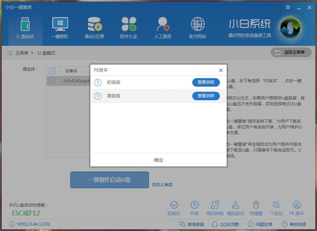 4、初級版是用來修復系統的,高級版就是用來重裝系統的,由于我們需要u盤重裝win10 32位,就在這里選擇高級版吧