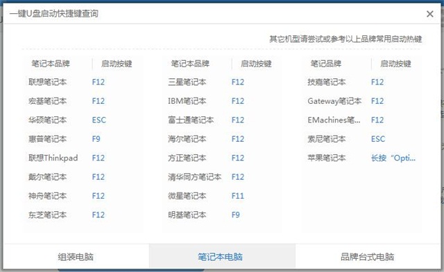 9、當彈出這樣的提示之后,就代表制作成功了,我們重啟電腦進入BIOS設置,將啟動方式設置為U盤啟動。各類電腦快捷鍵如下