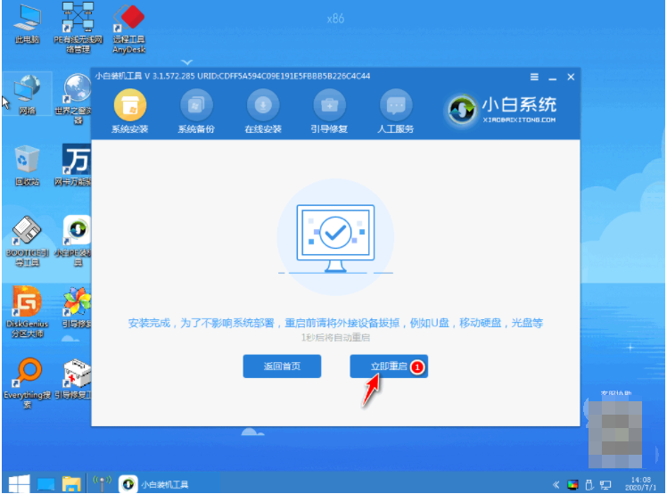 6、安裝完成之后我們需要繼續重啟電腦。