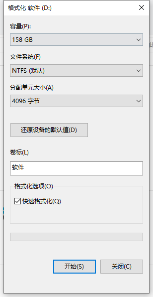3、在新彈出的頁面中勾選“快速格式化”后點擊“開始”即可。
