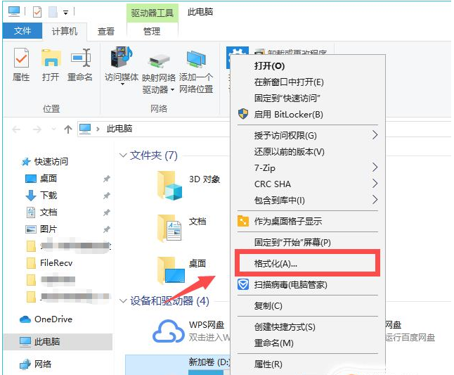 2、其他盤是點擊鼠標右鍵,選擇“格式化”。