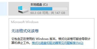 1、首先系統盤(C盤)是不能格式化的,如下圖所示。