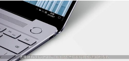 1、排除靜電作用影響。首先去除所有連接USB接口的U盤,然后長按開機鍵30秒左右。