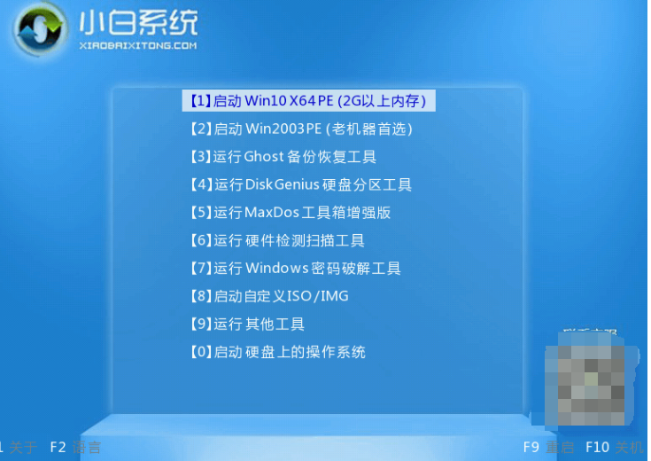 5.選擇啟動win10x64PE(2G以上內存)按回車鍵進入。