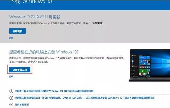 2、打開官方啟動盤制作工具頁面,點擊立即下載工具下載,下載 Windows 10MediaCreationTool。