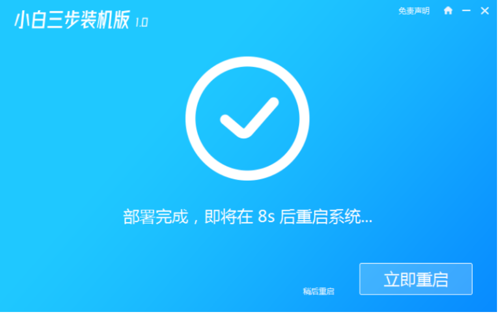 4、整個部署進度非???,完成后會有十秒鐘的倒計時來讓我們選擇立即重啟或者稍后重啟電腦。