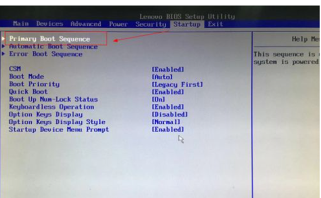 3、切換界面,選擇Primary Root Sequence 主要啟動順序。