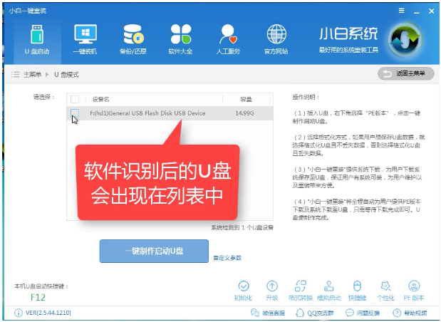 4. 軟件識別U盤后,會出現在列表中,勾選。