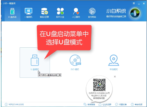 3. 打開軟件,選擇“U盤啟動”,點擊U盤模式。