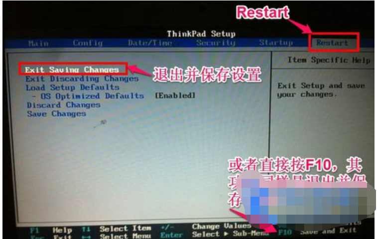 9,這樣傳統BIOS設置就完成了,進入Restart(重啟)這一項,在里面選擇“Exit Saving Changes”(保存并退出)這一項,進行保存并退出。