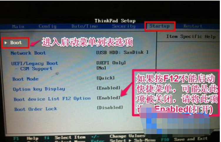 提示:順便在這里說一下,如果有的快捷啟動菜單鍵F12啟動不了,按了沒有反應,那是因為這里的F12功能鍵沒打開所致。如果這里是Disabled(關閉),那肯定F12快捷鍵就用不了,所以要把它設為Enabled(打開),這樣才可以使用F12快捷啟動菜單鍵。
