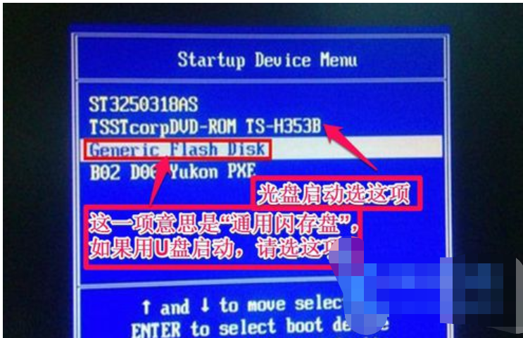 3,有的電腦可能顯示的快捷啟動菜單不一樣,如下圖,里面顯示的U盤不是U盤的名稱,而為USB-HDD,這個同樣為U盤。