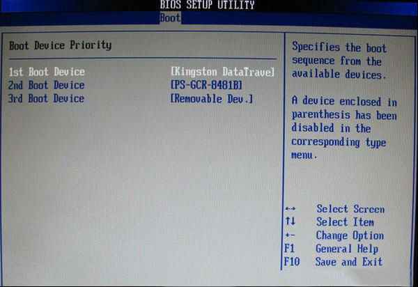 上圖:啟動優先級設備選擇(Boot Device Priority)在第一啟動設備(1st Boot Device)里選擇U盤。