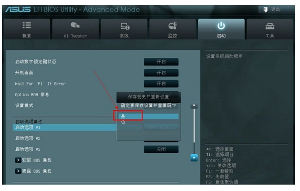5、切換完成后,啟動選項#1會顯示成你的U盤,最后按“F10”保存并重新設置。