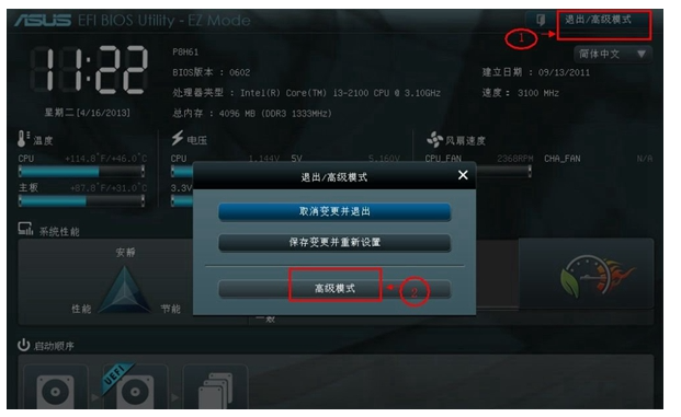 1、點擊右上角的模式切換按鍵,選擇“高級模式”,或者按F7直接進入高級模式。