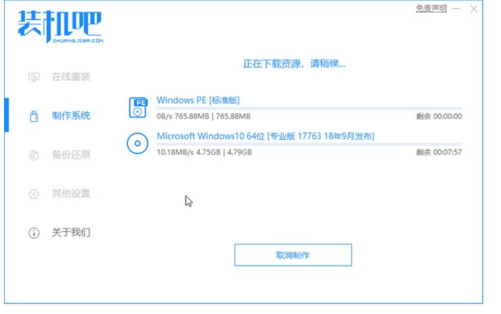 3、接下來軟件就會自動下載相關需要的文件已經pe系統,請耐心等候。