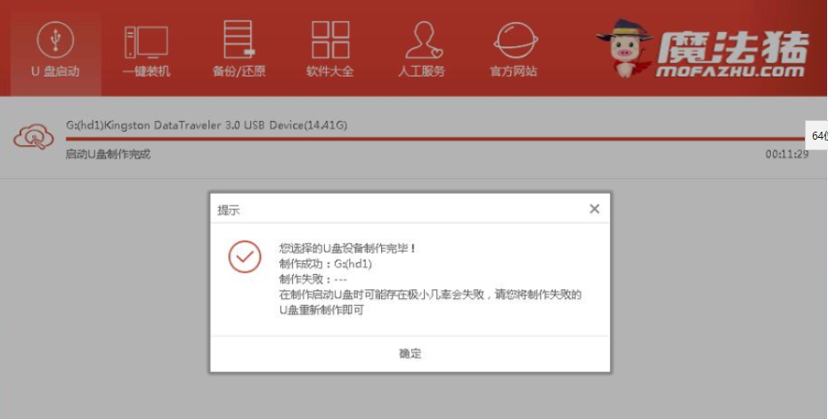 6.下載完成后開始制作U盤啟動盤,不用我們手動操作,等待它自動完成后即可,如圖制作完成。