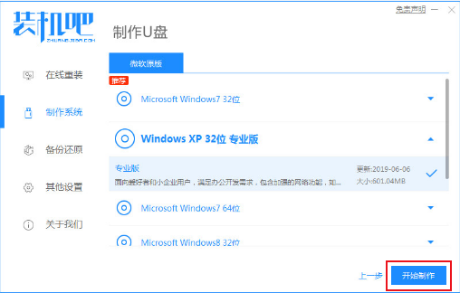 2. 選擇想要重裝的系統鏡像,然后點擊開始制作。