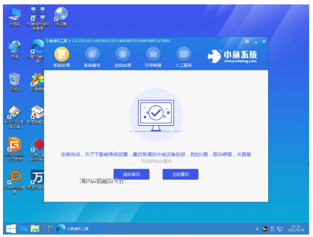 4.下載安裝資源,啟動U盤制作,安裝制作完成后,我們需要重新啟動電腦。