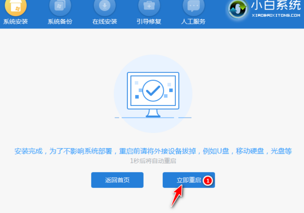 7、等待提示安裝完成后,選擇立即重啟電腦。