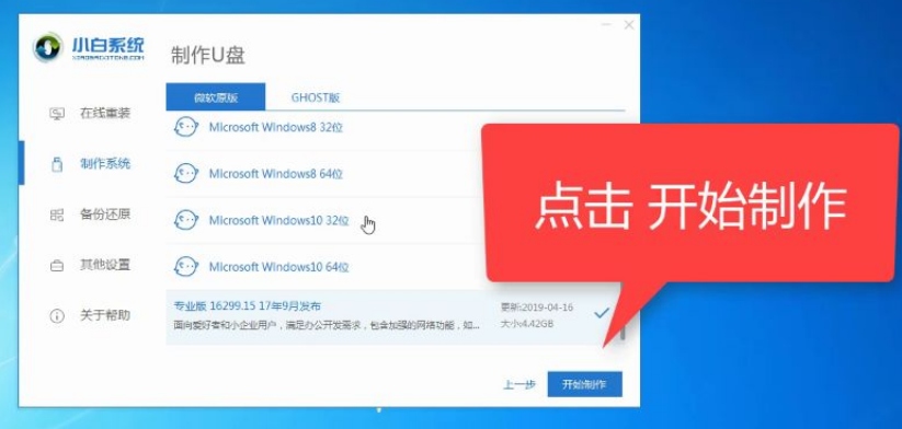 2、點擊想要安裝的win10系統,然后點擊-開始制作。