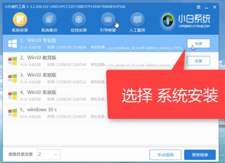 7、電腦打開后,程序會自動打開,選好你想要的系統版本,點擊-安裝。