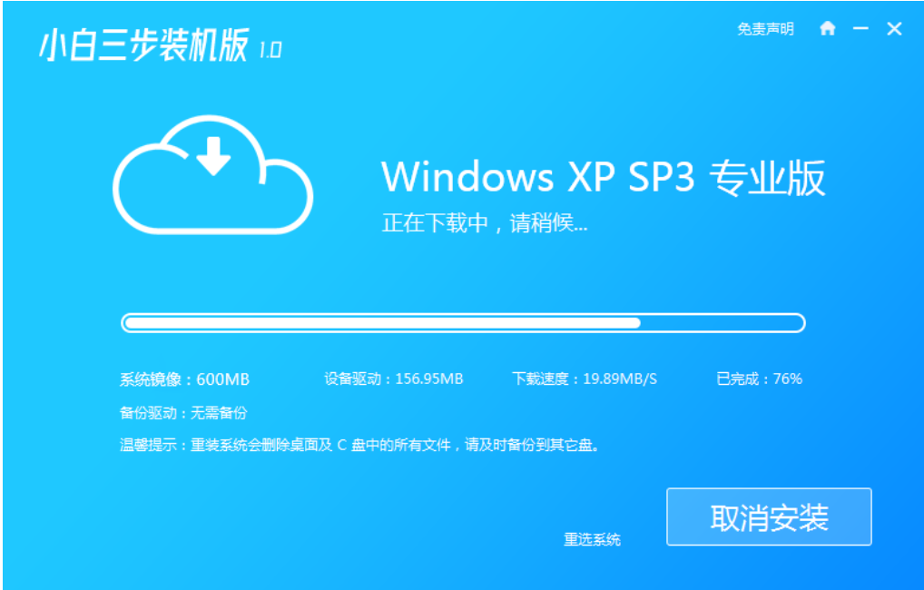 2.軟件將自動幫助我們下載WindowsXP鏡像和PE。請耐心等待。