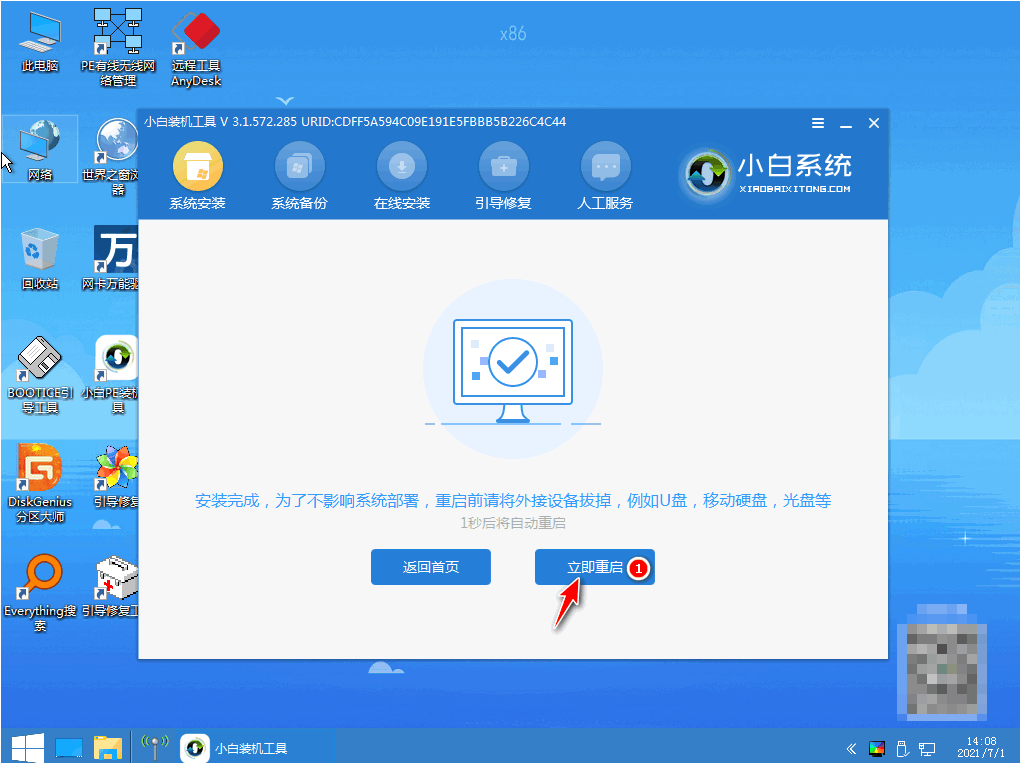8.等待系統安裝完成后,拔掉u盤點擊“立即重啟”電腦就可以了。