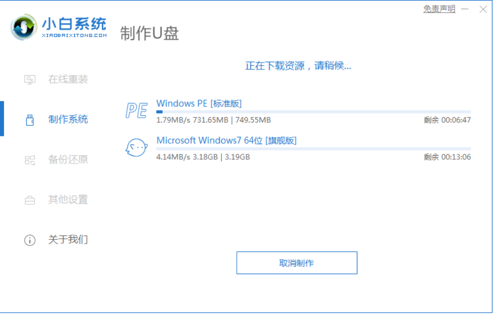 4、此時只需等待下載制作u盤的資源完成即可。