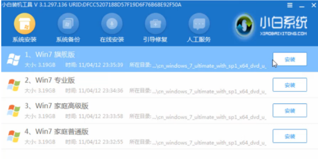 8、進入到pe系統內,打開小白裝機工具,然后點擊要安裝的系統版本。