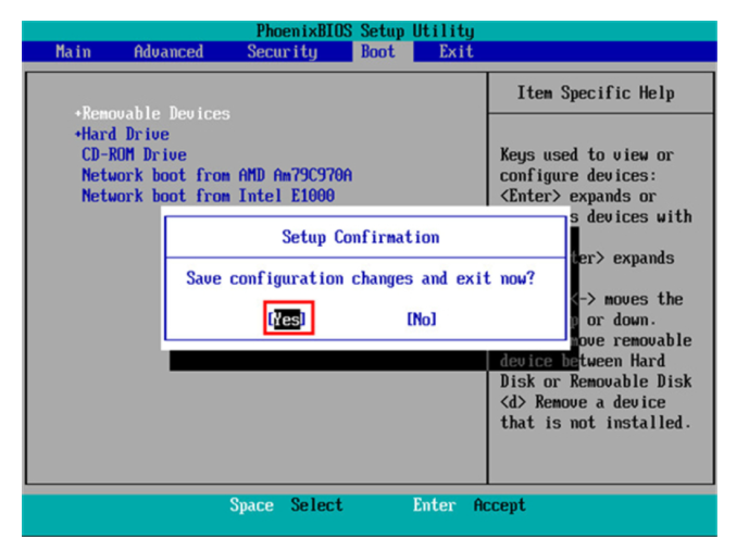 4、設置完成后,我們按下F10,彈窗中我們選擇“yes”,回車鍵確定即可,重啟后就能夠實現從U盤啟動了,如圖所示: