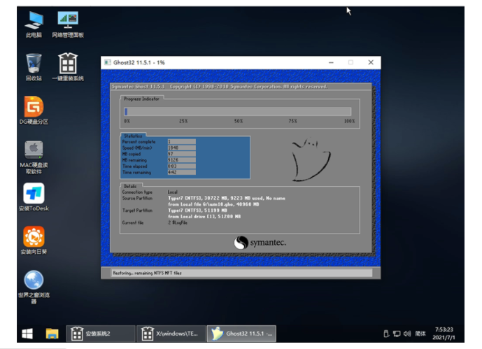 5、拔掉U盤電腦重啟后,系統會自動完成后續的程序安裝,直到看到桌面,系統就徹底安裝成功了。
