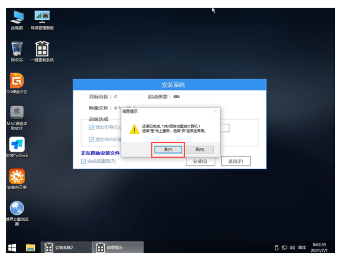 2、進入PE系統后,我們可以直接運行【一鍵重裝電腦系統】。