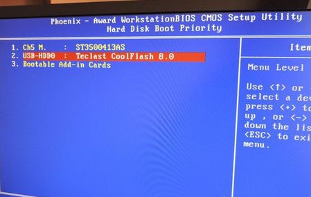 4、選擇USB-HDD按加減號或F5/F6或PageUP/PageDown,移動到第一位置,按F10回車重啟即可U盤啟動;