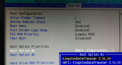 6、選擇Boot Option #1回車,選擇U盤選項回車;