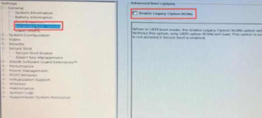 4.展開“Advanced Boot Options”,勾選右側的“Enable Legacy Option ROMs”選項。