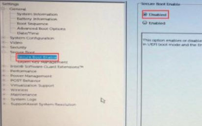 3.然后選擇“Secure Boot Enabled"選項,將右側的選項從“Enabled”改為“Disabled”下一步。