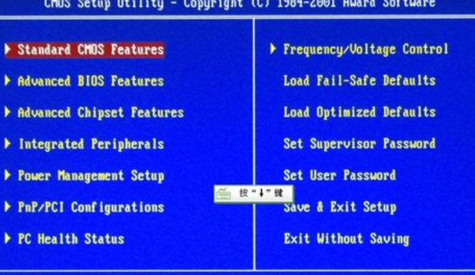 在BOIS界面中,方向鍵選擇,回車鍵確定,ESC鍵返回