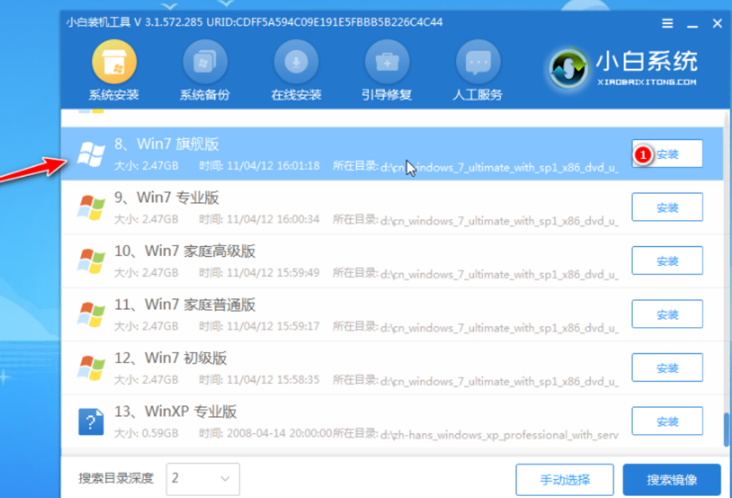 5、然后選擇需要安裝的win7系統點擊安裝。