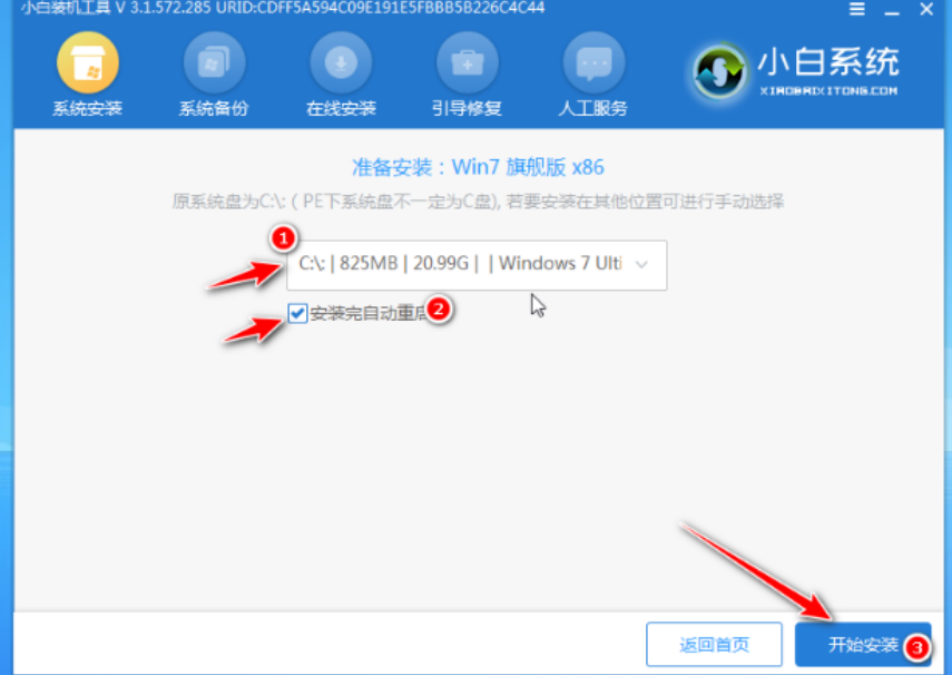 6、將系統安裝到系統盤c盤,點擊開始安裝。