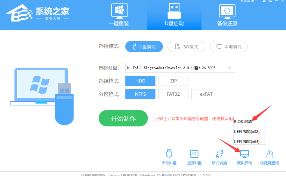 通過模擬啟動-BIOS啟動測試當前U盤啟動盤是否制作完成;