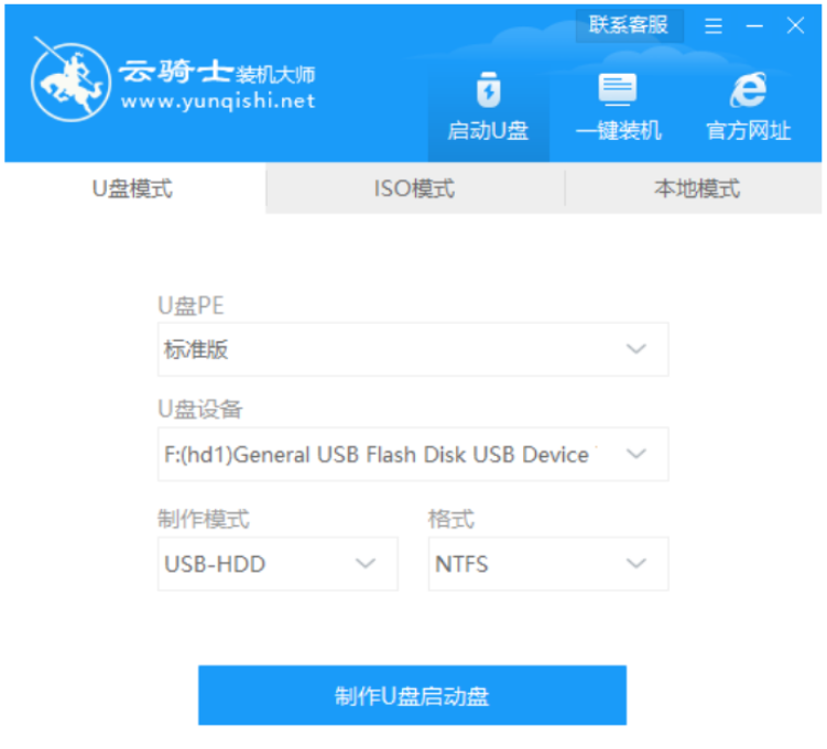 02 打開云騎士裝機大師,在電腦上插入U盤。