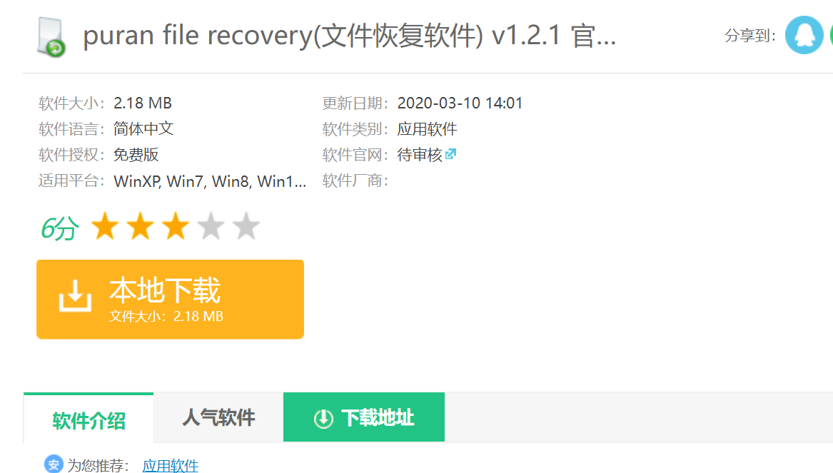 Puran File Recovery是一款免費的文件恢復軟件,使用這款文件恢復軟件免費版可以對誤刪除的文件或者數據進行恢復,恢復的過程很簡單。Puran文件恢復是能夠掃描一個廣泛的設備,包括硬盤,內存卡,可移動驅動器的CD / DVD和移動電話。