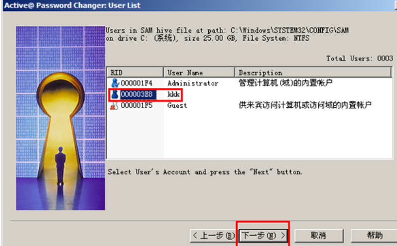 5.選擇所要清除密碼的賬號,點擊“下一步”