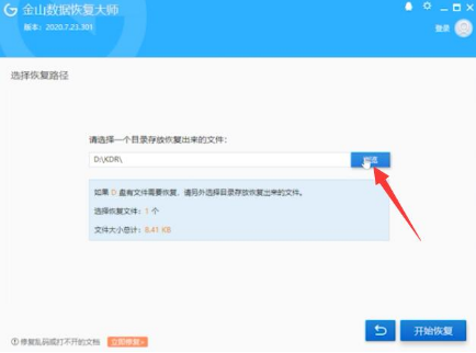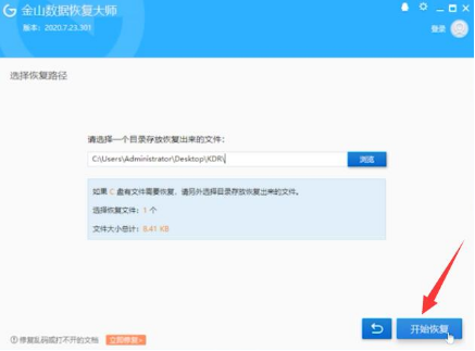 3. 設置恢復路徑,選擇開始恢復,然后等待數據恢復即可。