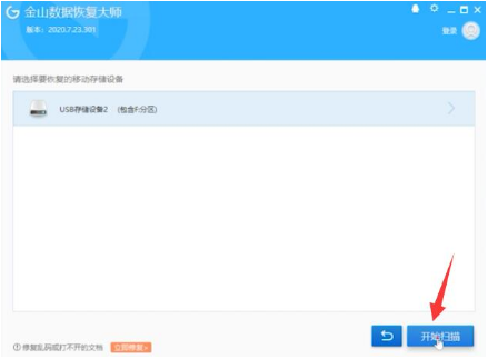 1. 打開數據恢復軟件,選擇u盤,選擇開始掃描。