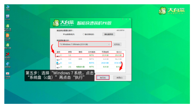 15、選擇Windows 7 系統,點擊系統盤(c盤)再點擊執行