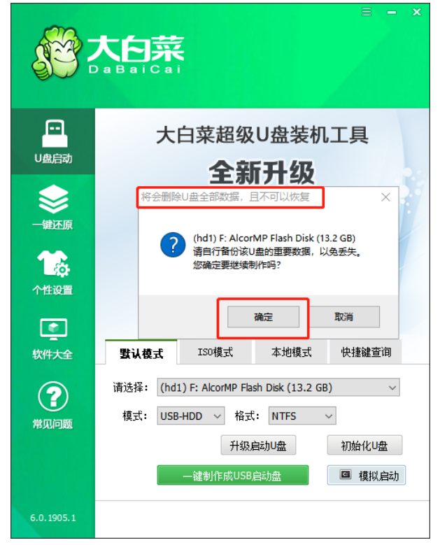 軟件版本:大白菜U盤啟動盤制作工具V6.0_2204