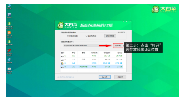 12、點擊打開選存放鏡像U盤位置(每個人存放不一樣,能查詢鏡像的位置就行)