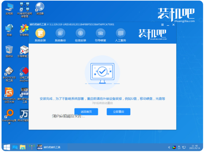4、然后等待重裝完成我們點擊立即重啟即可。